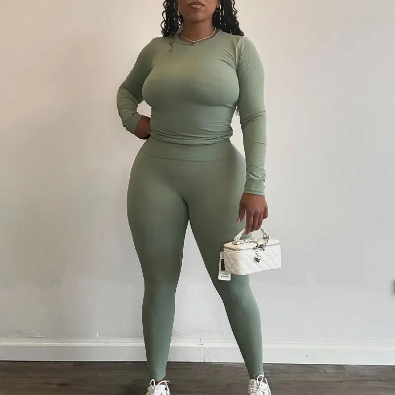 Huili Custom Logo High Stretch Top Pants Outfits Skinny Tracksuits 2 Two Piece Fitness Leggings Pajamas Loungewear Women Sets